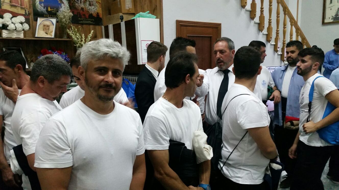 Igualá de la cuadrilla de costaleros que portará a la Virgen de la Cabeza de la Iglesia de San Juan de la Palma.