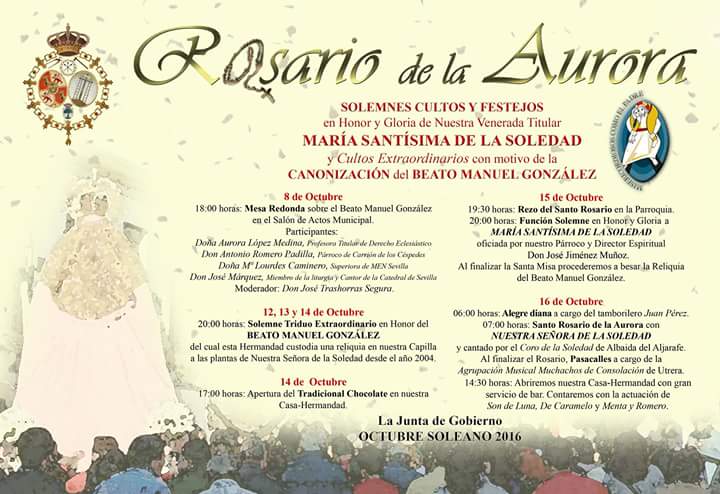 Cartel de Actos en Honor a María Santísima de la Soledad de Huevar del Aljarafe.